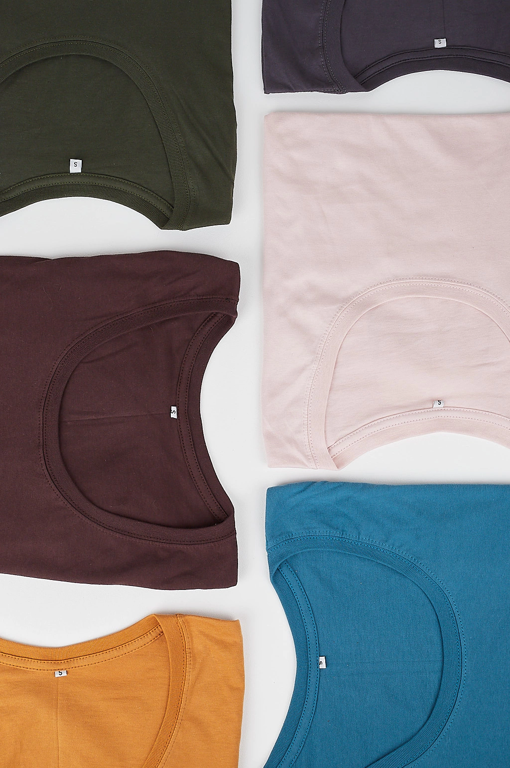 Este pack incluye 3 unidades combinadas entre los siguientes colores: blanco, negro, nude, ocre, petróleo, chocolate, bordo, gris al 25%, militar y adoquín.